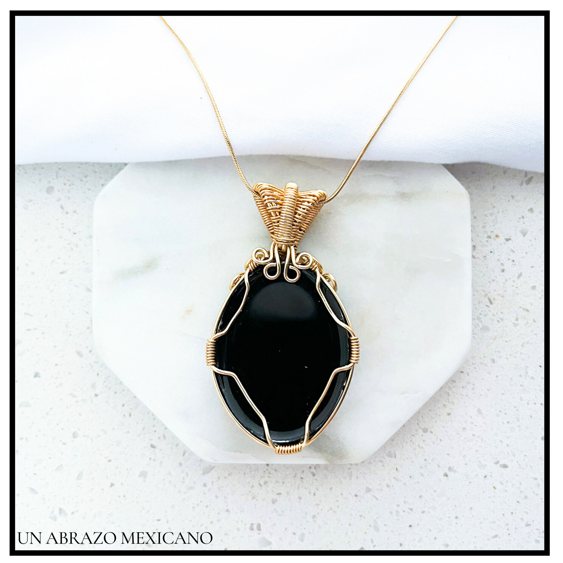 * Please note, due to shipping, the black stone is slightly dented. Due to this dent, this necklace is on sale!