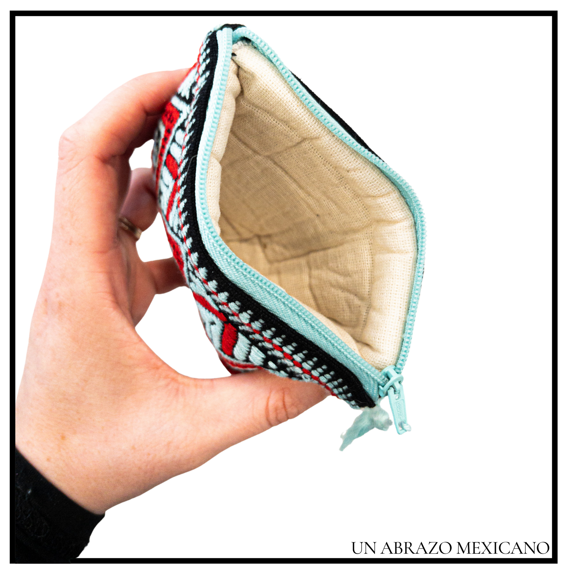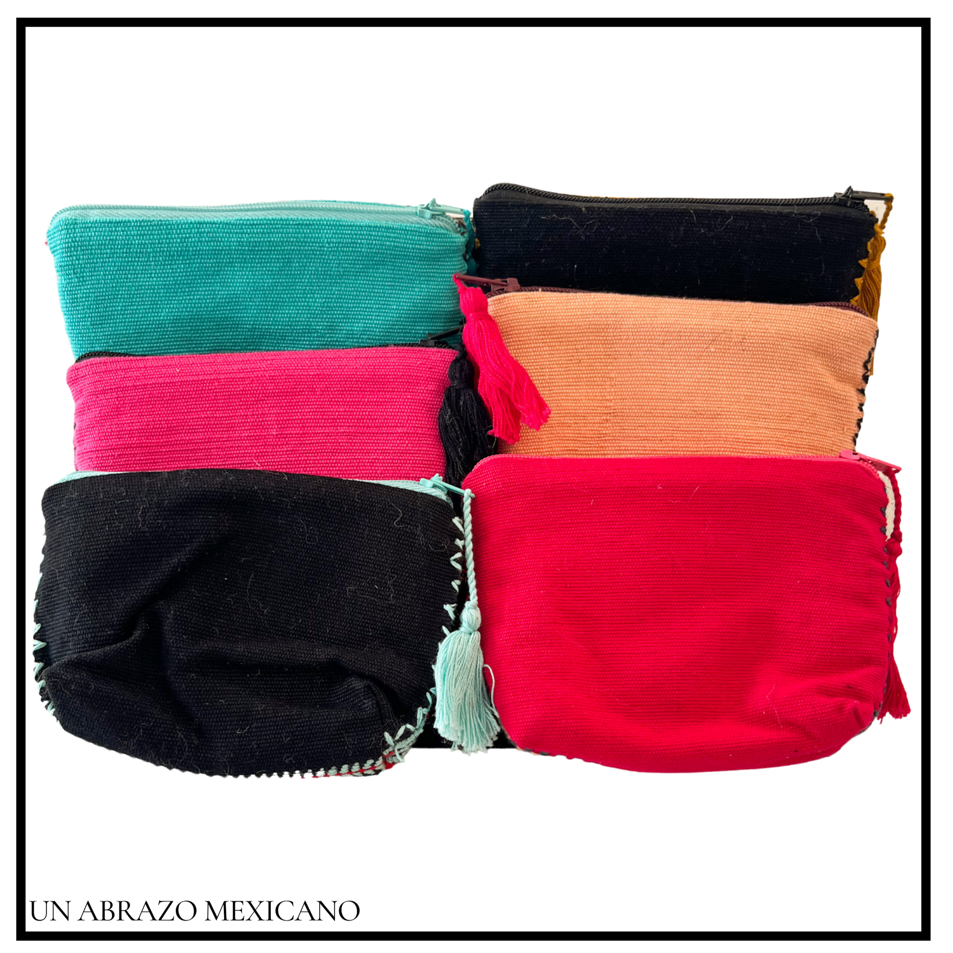 Keep all of your essentials close in a bright, easy to find handstitched textile fabric coin purse. This coin purse is layered with a thick protective inner fabric. There is a zipper closure with a cute tassel attached.